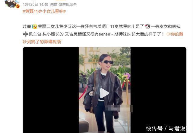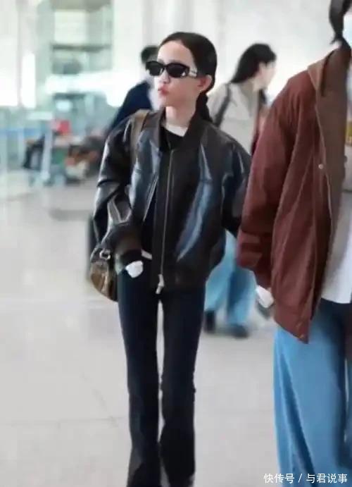 她穿着一身皮衣酷炫十足,下身搭配的一条微喇裤,凸显了她小小年纪就有了一双大长腿,而且比例非常的好。 更重要的是,黄少艾还戴了一副黑色墨镜,在镜头面前格外有冲击力。